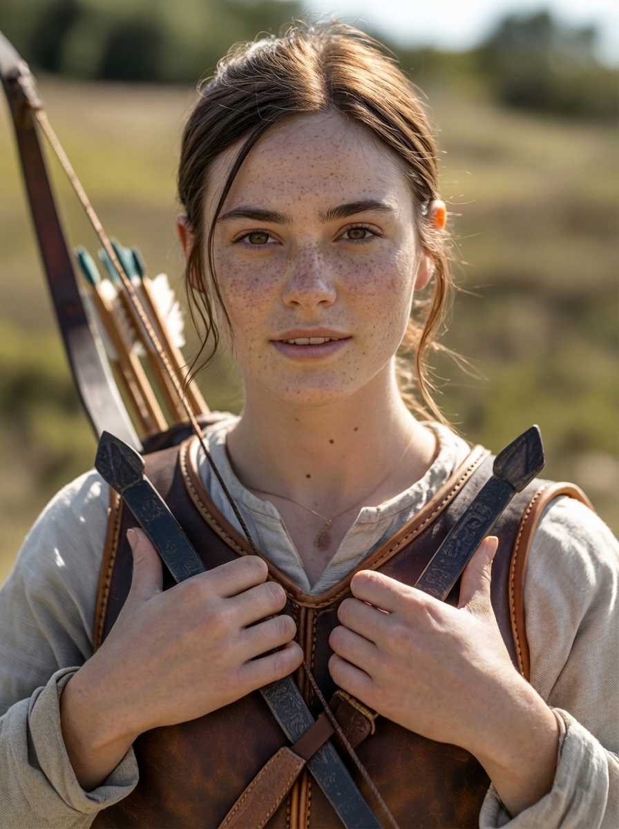 Raised on the frontier, hunting and growing what the family needed. Took up swordplay out of boredom. Joined the Wardens' Company — a reputable mercenaries and adventurers guild with chapters across the continent — specifically its chapter known as the Iron Charter, which specializes in bodyguard and security contracts, at eighteen for the same reason — craved adventure, variety, epic battles, clever things to say at the fish market. Often lost in daydreams that play out like heroic tales. Daydreams are a liability everywhere except combat, where she's relatively focused.